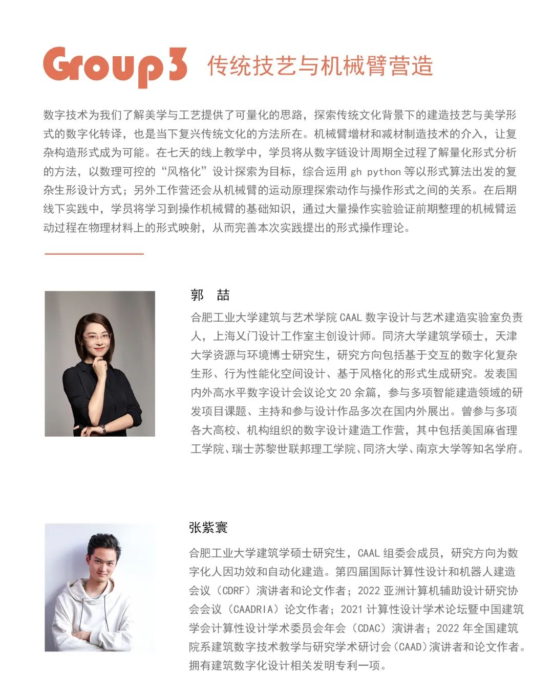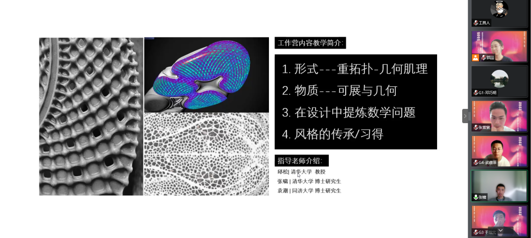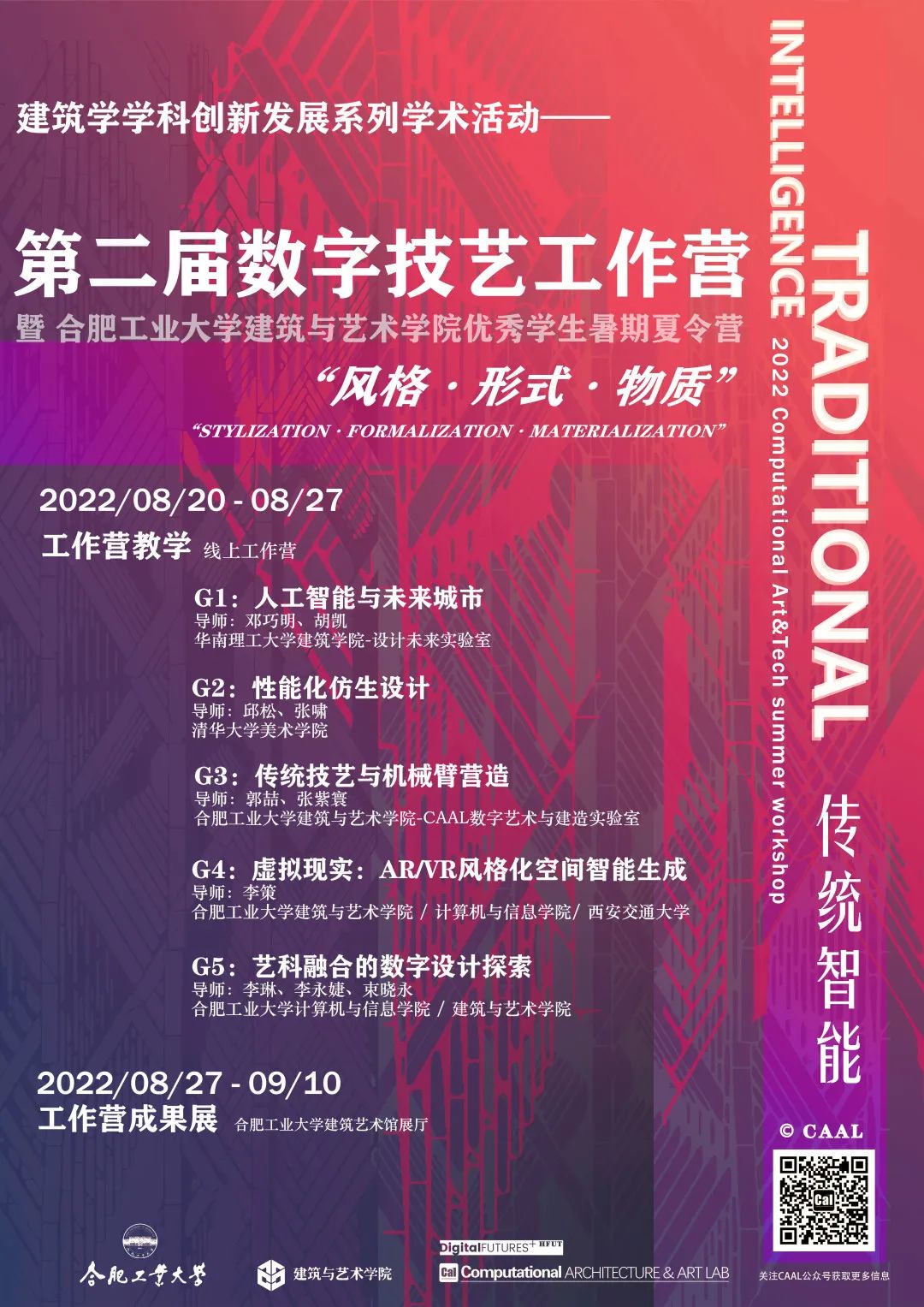 随后,华南理工大学建筑公司邓巧明教授团队、清华美院邱松教授团队、m88官方网站登录地址CAAL数字艺造实验室团队、合工大计算机与信息公司李琳教授、束晓永教授团队分别就本次工作营主题“传统智能·风格形式物质”而开展的教学进行了精彩的内容预告。