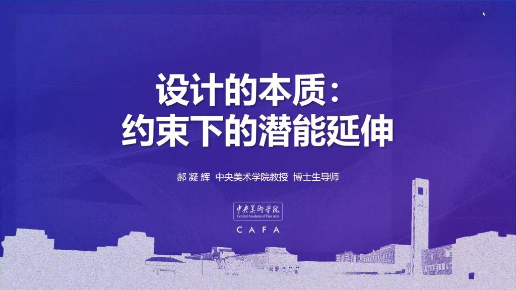 郝凝辉教授以《设计的本质:约束下的潜能延伸》为主题,通过对“设计的本质”问题的提出,结合不同设计师的理解与不同视角下的定义,引出“设计的根本任务与本质特征是什么”“设计在社会文化建设过程中应发挥怎样的功能”“如何构建具有中国特色的设计理论与设计思想”等更深层问题引发师生思考。近年中国设计事业得到前所未有的蓬勃发展,但是仍然存在诸多问题。郝教授分析了目前中国设计的困境,他强调,我们要不断对设计的本质进行再思考,才能避免因“本性迷失”而将自然和社会带入危险境地。他提出“设计的本质是约束”、“设计的本质是简化人类与外界的互动”、“设计的本质是帮助每一种文化建立个性”、“设计的本质是进化与迭代”、“设计的本质是思辨”、“让设计回归本质:向善”,并结合丰富的案例进行“设计的本质”的多维度解读,最后呼应前面问题的提出,总结“设计的未来”。他提到设计需要自我约束、审思明辨、立足现实、独立包容、虚实结合、精益求精、与时俱进、智造未来,不同地域的设计者需找准自身坐标定位,回归元设计。