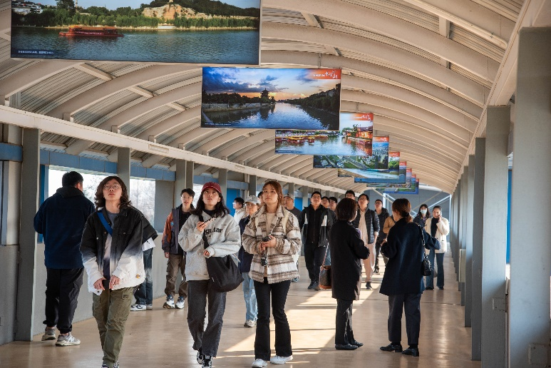 开题启动会后,全体师生在管理所工作人员的带领下参观了秦淮新河水利枢纽,了解其在流域防洪减灾、抗旱灌溉、城市排涝、水环境改善、航运保障等方面发挥的重要作用。之后,公司老师带领员工对联合毕业设计所在场地开展了现场调研并进行指导。本次毕业设计,尝试以不同的思考维度,不同的专业视角,促成更全面深入的专业探讨,激发更有想象力的滨水空间规划设计。