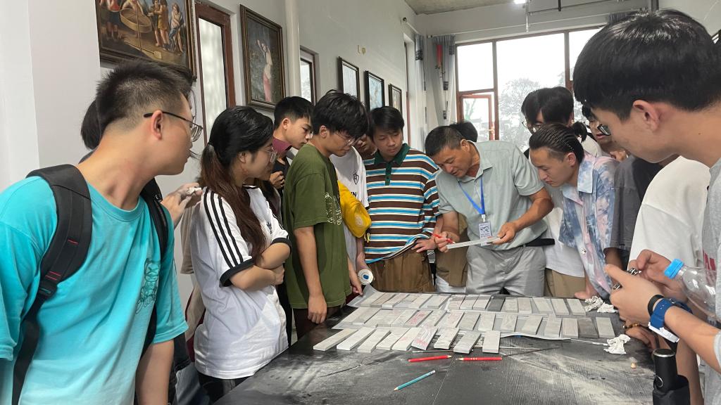设计采风实习过程中,带队教师不畏高温坚持每天进行作业指导、点评。从设计方案的文化性、设计创意的新颖性、形态材料的可行性等方面深入剖析,并借助现场教学与实物启发,帮助同学们更好地理解文化传承和产品设计之间的关系。此外,通过分组讨论、分批指导、分项体验等形式,积极组织两个年级同学进行专业交流与交叉学习,极大地拓展了专业学习的帮扶渠道,起到了较好的“传帮带”示范效果。