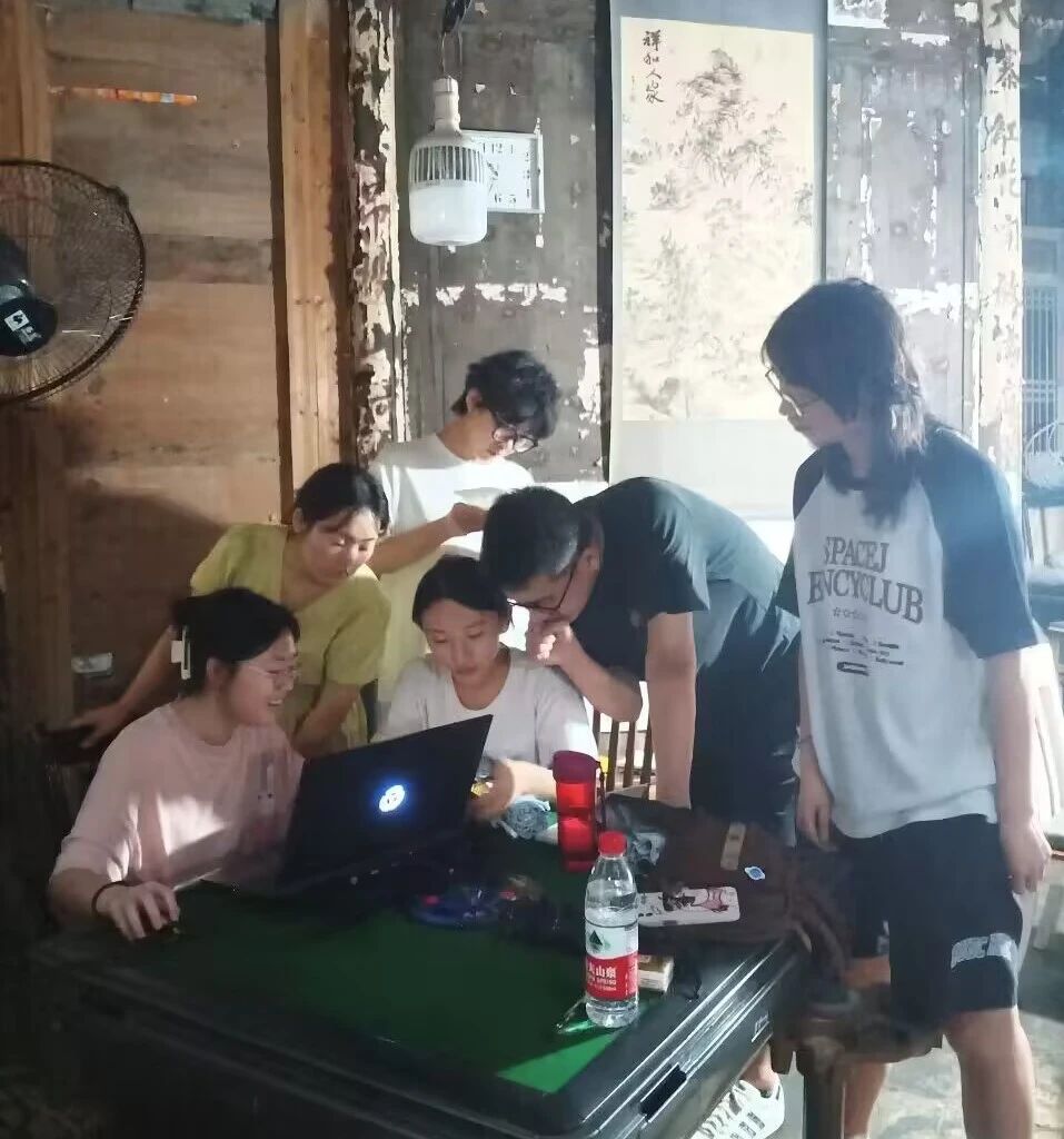 七月的皖南,酷热难耐,但师生的学习工作热情依然饱满。在测绘现场,指导老师每天上、下午均到各组展开指导,及时解答同学们测绘中遇到的问题,现场讲解建筑与环境气候的关系、木构架的建构、物理环境的营造等问题,引导员工进行传统文化、生态智慧、工匠精神等方面问题的认知与思考,鼓励员工深入了解当地建筑历史、风土人情和传统技艺等。每天晚饭后,各小组将当天的测绘数据进行整理、校对,完成相应图纸的绘制。指导老师进行现场指导,检查实习进度。