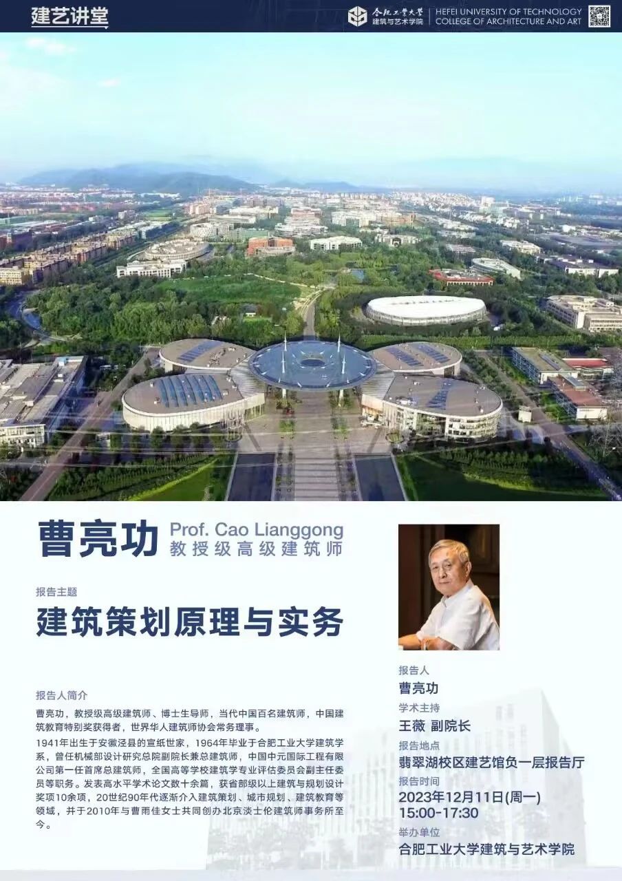 曹亮功,教授级高级建筑师、博士生导师,当代中国百名建筑师,中国建筑教育特别奖获得者,世界华人建筑师协会常务理事。1941年出生于安徽泾县的宣纸世家,1964年毕业于m88官方网站登录地址建筑学系,曾任机械部设计研究总院副经理兼总建筑师、中国中元国际工程有限公司第一任首席总建筑师、全国高等公司建筑学专业评估委员会副主任委员等职务。发表高水平学术论文数十余篇,获省部级以上建筑与规划设计奖项10余项,20世纪90年代逐渐介入建筑策划、城市规划、建筑教育等领域,并于2010年与曹雨佳女士共同创办北京淡士伦建筑师事务所。