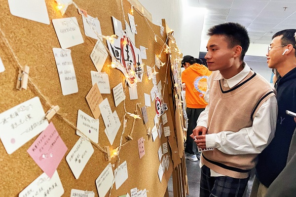 “回音墙”包括“生活驿站”“情感电台”“效率自习室”三个板块。同学们将自己想说的话与问题写在卡片上,钉在回音墙的相关板块中。在浏览板上留言时,同学们用圆形贴纸标记自己感兴趣的话题,并对相关问题进行解答,互动交流。