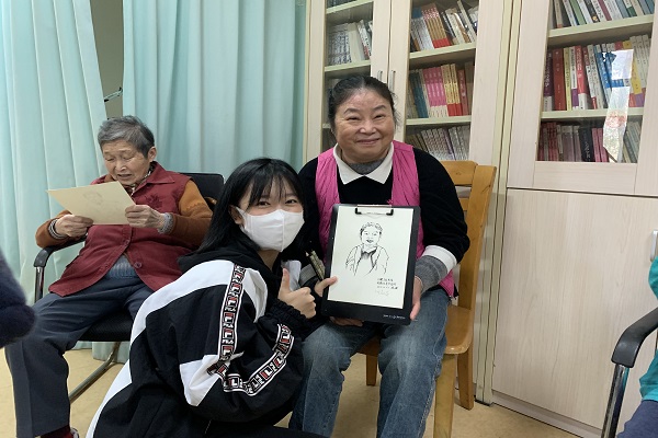 软件公司微爱社的同学给爷爷奶奶们宣讲预防诈骗的有关知识。公司红月社的同学则发挥专业特长,用画笔给爷爷奶奶们画像。志愿者们尽自己所能,抓住老人们的形象特征,把老人们的外貌以速写的形式描绘在画纸上,让老人们感受到来自志愿者们的由衷的问候和关心。志愿者也在绘画过程中以“聊家常”的形式向他们讲述防诈骗相关信息。老人们对志愿者们的到来很热情,透露着对陪伴的渴望,大家一起度过了一个忙碌又愉快的上午。