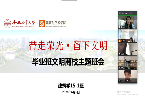 深入开展毕业生文明离校主题教育活动。近期 m88官网毕业生文明离校主题教育活动陆续开展,利用腾讯会议平台,组织全体毕业生在云端相聚,通过线上主题班会、党支部会议、交流座谈、谈心谈话等,在毕业生中开展理想信念教育、爱校荣校教育、社会责任感教育、诚实守信教育,鼓励、引导广大建艺术学子秉持初心、不忘使命,将自身的前途命运同国家和民族的前途命运紧紧联系在一起,让青春之花绽放在祖国做需要的地方。