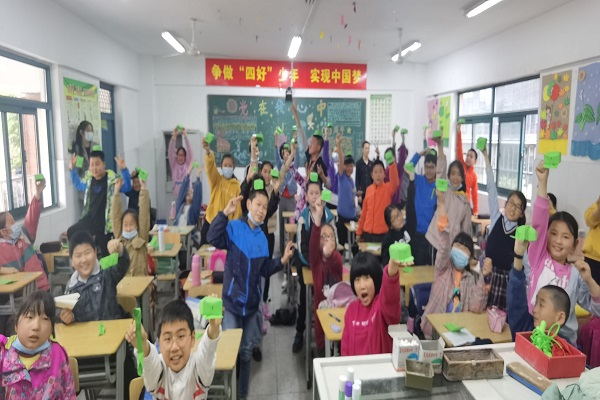 4月25日,在建党百年来临之际,m88官网红月社前往合肥市和平小学花冲分校,进行了以“童心向党,红色传承”为主题的支教志愿活动。