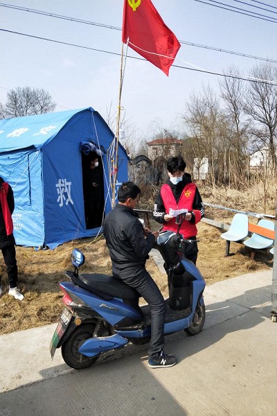城乡规划2015级聂梦琦同学作为一名员工党员,时刻牢记党员的使命,疫情防控工作开展以来,其所在村里成立了疫情防控志愿者队伍,聂梦琦冲在一线,主动申请加入进来。她和其他志愿者一起积极张贴宣传标语、倡议书、宣传疫情防控知识,劝说村民戴口罩、不聚众……为村里疫情防控工作注入了新鲜活力。“您好,现在是疫情防控特殊时期,请问您从哪里来?要到哪里去呢?”早上七点钟聂梦琦准时到岗,开始了她一天长达12小时的志愿值班工作,“我是一名老员工党员,虽然不能像一线的医护人员和军人冲锋在疫情防控最前线,但希望通过自己的付出为家乡的抗击疫情工作贡献一份力量。”