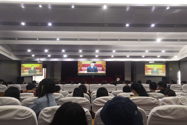 4月30日上午,公司组织党员教师代表和员工代表在建艺馆负一楼准时观看纪念五四运动100周年大会直播。师生代表认真聆听了习近平总书记在纪念五四运动100周年大会上的重要讲话。