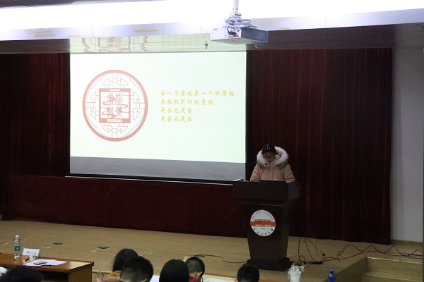 比赛开始,来自各公司共37名参赛选手依次上台,通过PPT汇报的方式介绍班徽的设计灵感,讲述班徽背后的故事。同学们通过自己丰富的灵感与多彩的展现力,设计了一个个富有特别意义的班徽。每一个班徽都包含作者独特的设计理念,都给在场的评委和观众以视觉的震撼和心灵的享受,引得台下掌声连连。
