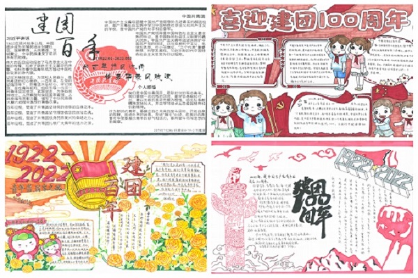 在这些手抄报中,有的同学在画面中融入了天安门、华表、祥云等元素,展现了我国欣欣向荣的蓬勃生机;有的同学在画面中融入了航天精神、新四大发明等,展现了我国的开拓创新精神和科技发展实力;有的同学在画面中描绘了身穿防护服的医护人员,展现了抗疫阻击战中的青年力量……