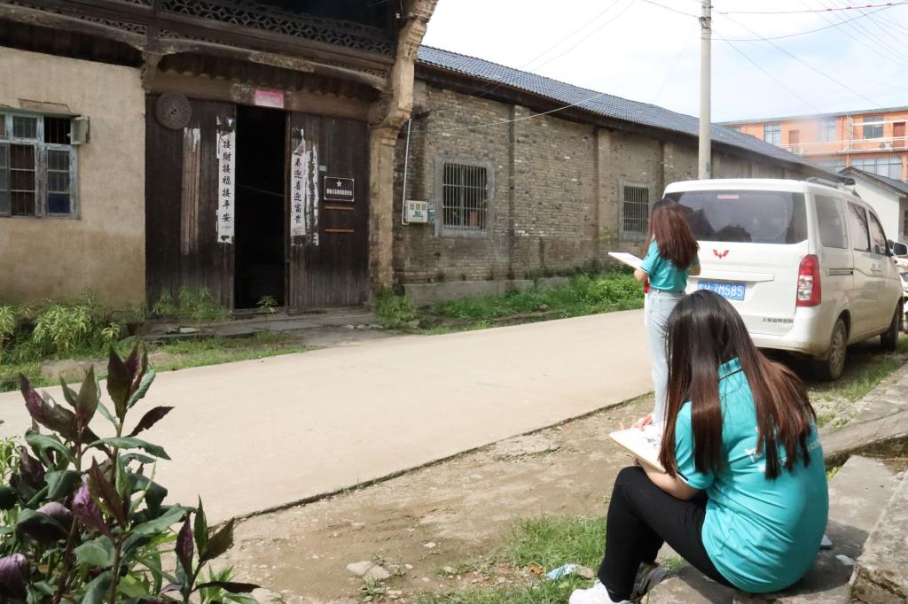 实践团队队员现场描摹革命旧址建筑