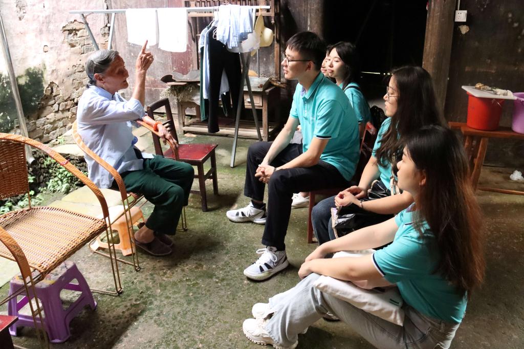 为了进一步深化调研成果,实践团队对革命老区群众、游客等群体进行了访谈调研。在黎痕乡苏维埃政府旧址古屋内,现居故居的老人向团队成员详细介绍了祖宅在革命斗争中的光辉历程,先辈们的英勇事迹如一幅幅画卷呈现在队员们的眼前。
