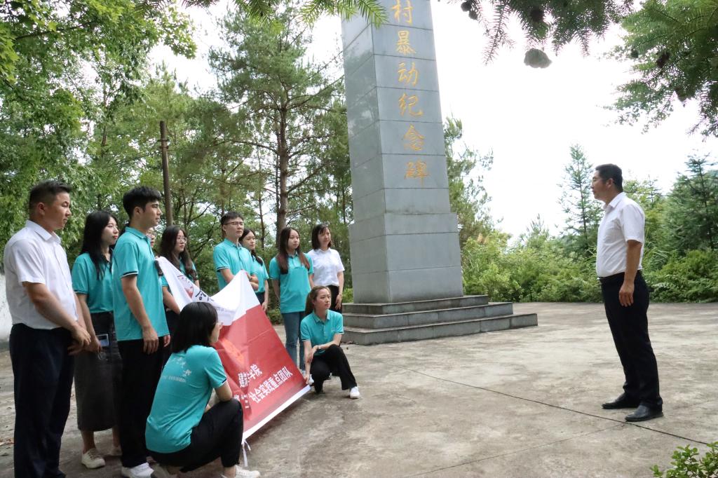 在调研中,实践团队结合当地红色文化开展党史学习实践。在石台县郑村暴动纪念碑前,校团委书记武国剑现场为团队讲了一堂生动的党课。他围绕党的百年历程向队员们介绍了党的艰辛奋斗史,结合郑村暴动历史事件赞扬了广大人民群众在党的领导下英勇斗争的伟大精神,勉励在场的青年学子把握青春年华,在实践中历练成长,不负国家和人民的希望。