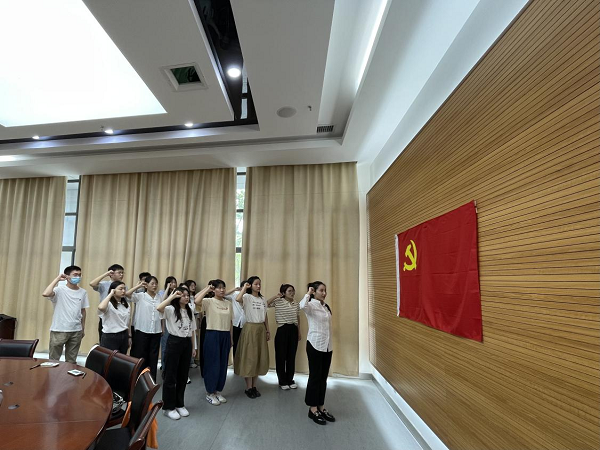 活动最后,全体党员右手握拳,面向党旗庄严宣誓。铿锵有力的誓词,神圣而豪迈,再次点燃在场每一位党员心中爱党、忠诚、敬业、奉献的激情。