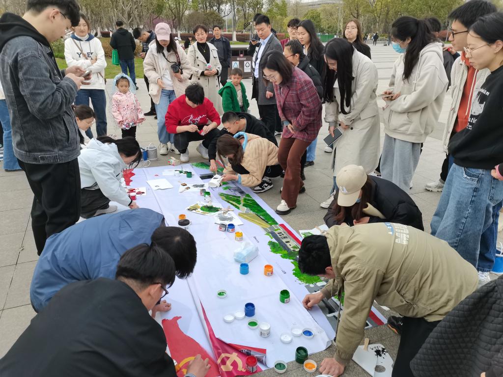 参观完毕后,在南广场雕塑前,研究生党员们共同绘制了包含渡江战役纪念馆、新四军第四支队东进抗日纪念馆和新四军江北指挥部等数个知名红色教育基地的红色画卷,吸引了群众驻足欣赏。