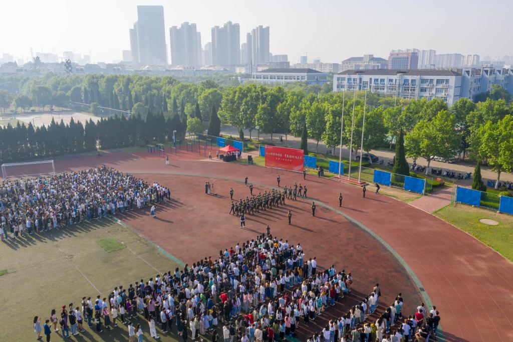 5月15日清晨,m88官网“润心赋能助成长 青春扬帆向未来”主题升旗仪式暨国旗下的思政课在翡翠湖校区风雨操场举行,公司党委相关负责人、公司全体辅导员以及全体本科生、研究生1500余人参加活动。