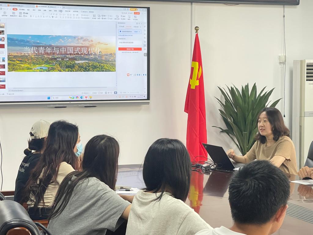 在专题党课中,孙彩霞以“当代青年中国式现代化”为题,通过当代青年中国现代化引出“人”的现代化,围绕人与物的关系、人与人的关系、人与自然的关系、人与自身关系等多方面展开讲解,鼓励同学们积极参与社会实践活动,让青春在全面建设社会主义现代化国家的火热实践中绽放绚丽之花。