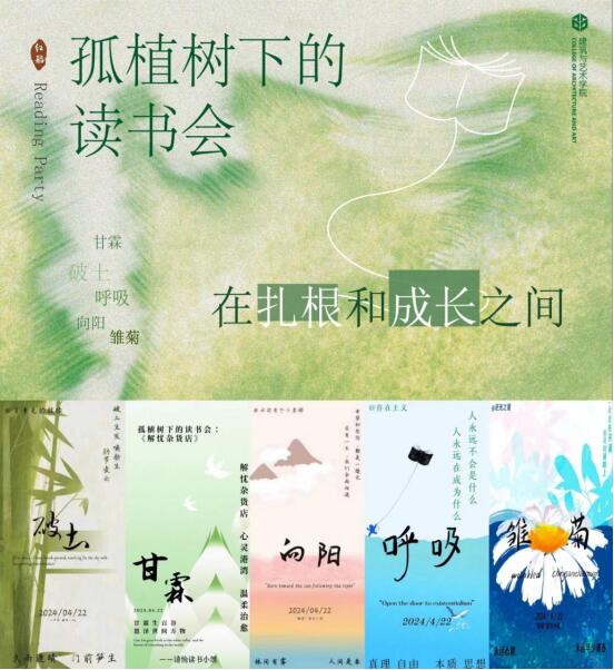 读书会聚焦人生成长发展问题,通过各小组选定的《存在与虚无》《逆光之夏》《解忧杂货铺》《肖申克的救赎》《云边有个小卖部》五本书,分别提取“呼吸”“雏菊”“甘霖”“破土”“向阳”五个关键词作为子主题展开分享。伴随着和煦的微风与舒缓的音乐,同学们畅所欲言,探讨在这些书籍中找寻到的自我价值与生命奥义,在感悟分享和交流沟通中抒发对成长的理解。