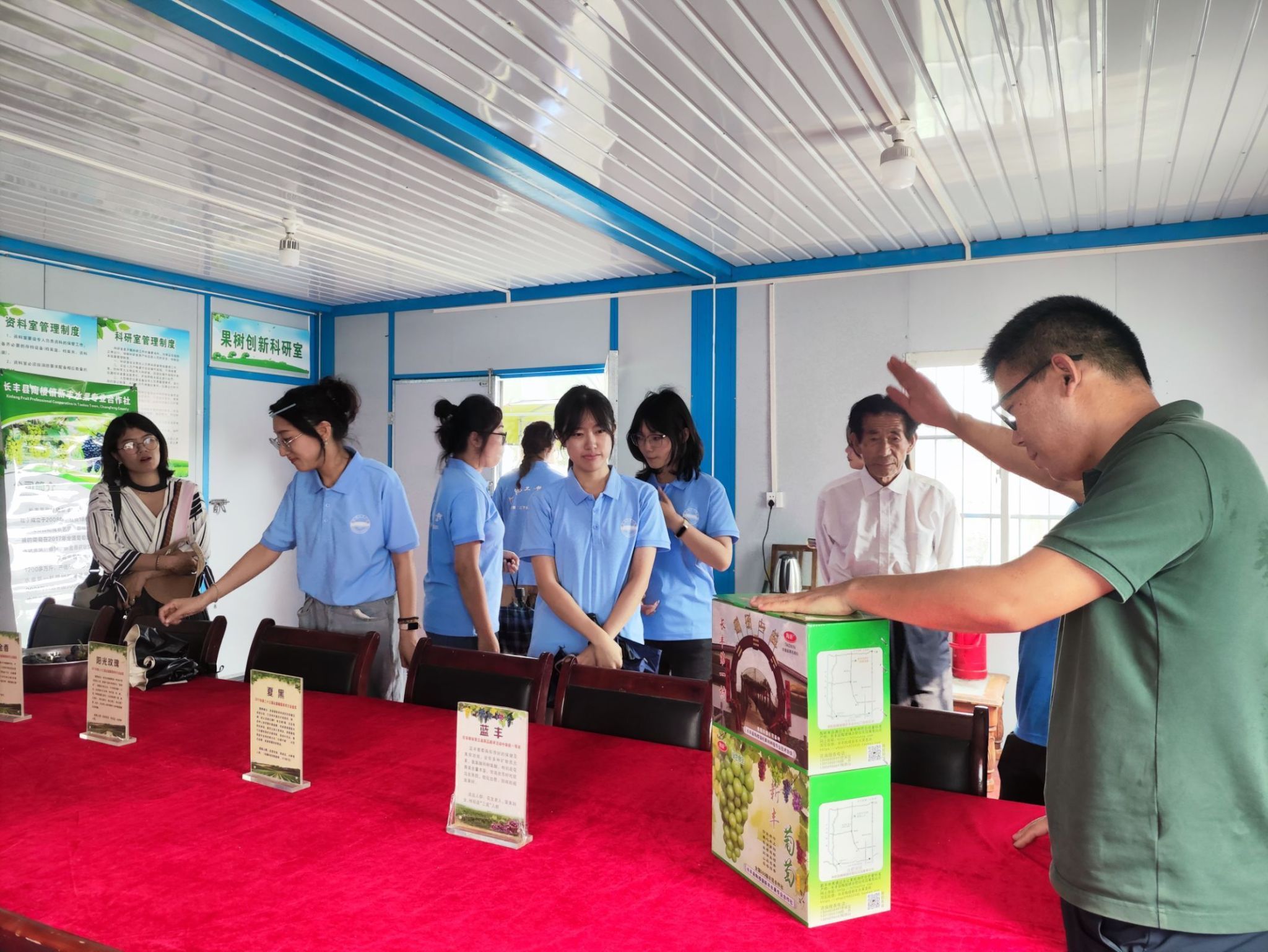 带着对乡村发展的新见解,实践团队来到了陶楼镇葡萄园。园区书记与技术人员详尽介绍了种植的葡萄品种及对美观包装的迫切需求。成员们全面考察了葡萄园的种植环境及农户的种植理念,如保证产品品质的承诺、避免使用农药和催熟剂等绿色种植方式,这些信息为后续的设计工作提供了重要参考。