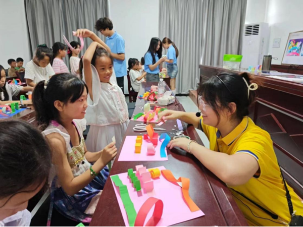 本次实践活动共招募老营村50余名中小员工。为了确保支教活动取得实效,支教团队在出发前进行了充分的准备。团队根据乡村公司的教学需求和员工的实际情况,制定了详细的教学计划和课程安排,内容涵盖了语文、思想品德、爱国教育、安全教育等基础课程,还特别增设了书法、葫芦丝、绘画、漆扇、武术、艺术鉴赏、手工等艺术类课程。整个支教活动将爱国教育和文化教育、艺术教育相结合,在提高当地中小员工的审美素养的同时强化了大家热爱家乡、热爱祖国的信念。支教结束后,实践团队组织员工们开展了一场丰富多彩且极具特色的文艺汇演,集中展示为期两周的教学成果,反响热烈。