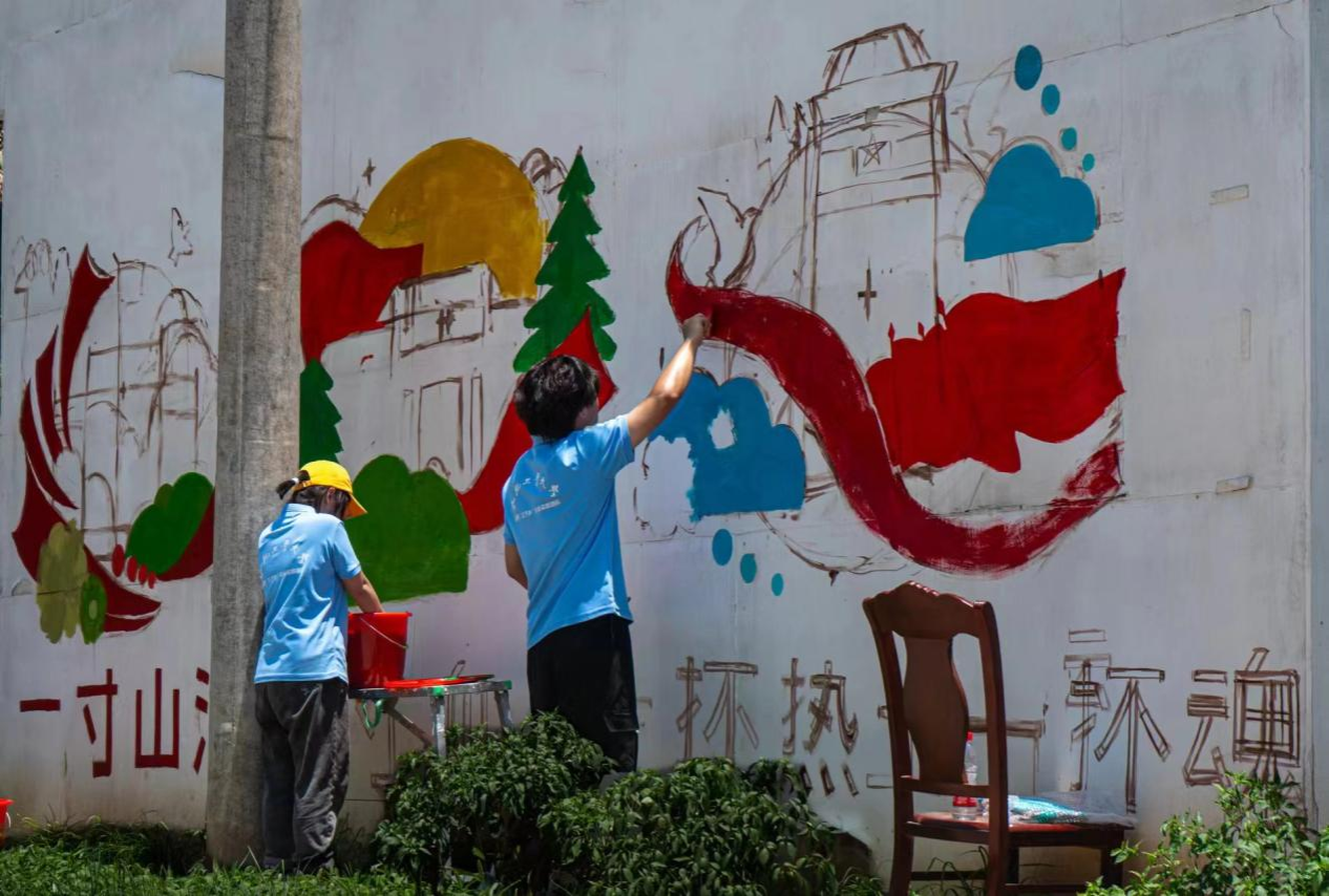 画笔描绘革命故事,设计赓续红色血脉。实践团队在了解金寨红色文化产业发展历史后,在当地团委支持下,在梅山开展了红色建筑主题墙绘,通过绘制以烈士纪念塔为代表的金寨标志性建筑,营造“将军县”的红色文化氛围。此外,实践团队还选取了金寨“红绿蓝”产业模式为设计元素,设计了一系列文创产品,助力金寨产业协调发展。
