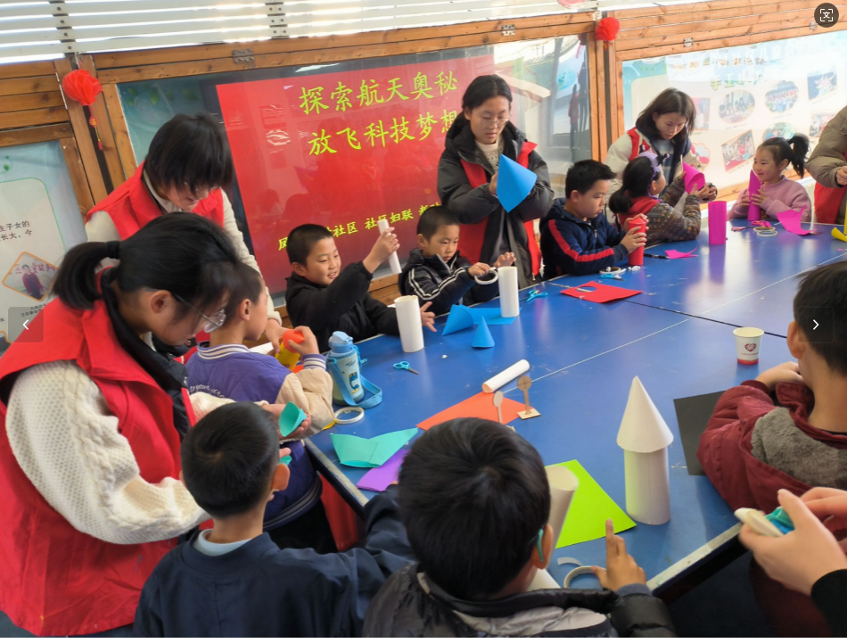 为了丰富小朋友的课余生活,增强他们的动手能力,12月15日,m88官网联合瑶海区三里街街道凤阳一村社区社会组织联合会携手开展了一场趣味盎然的“小小探险王:走进科学世界”主题活动,志愿者带领孩子们完成了小游戏和“火箭”的制作。