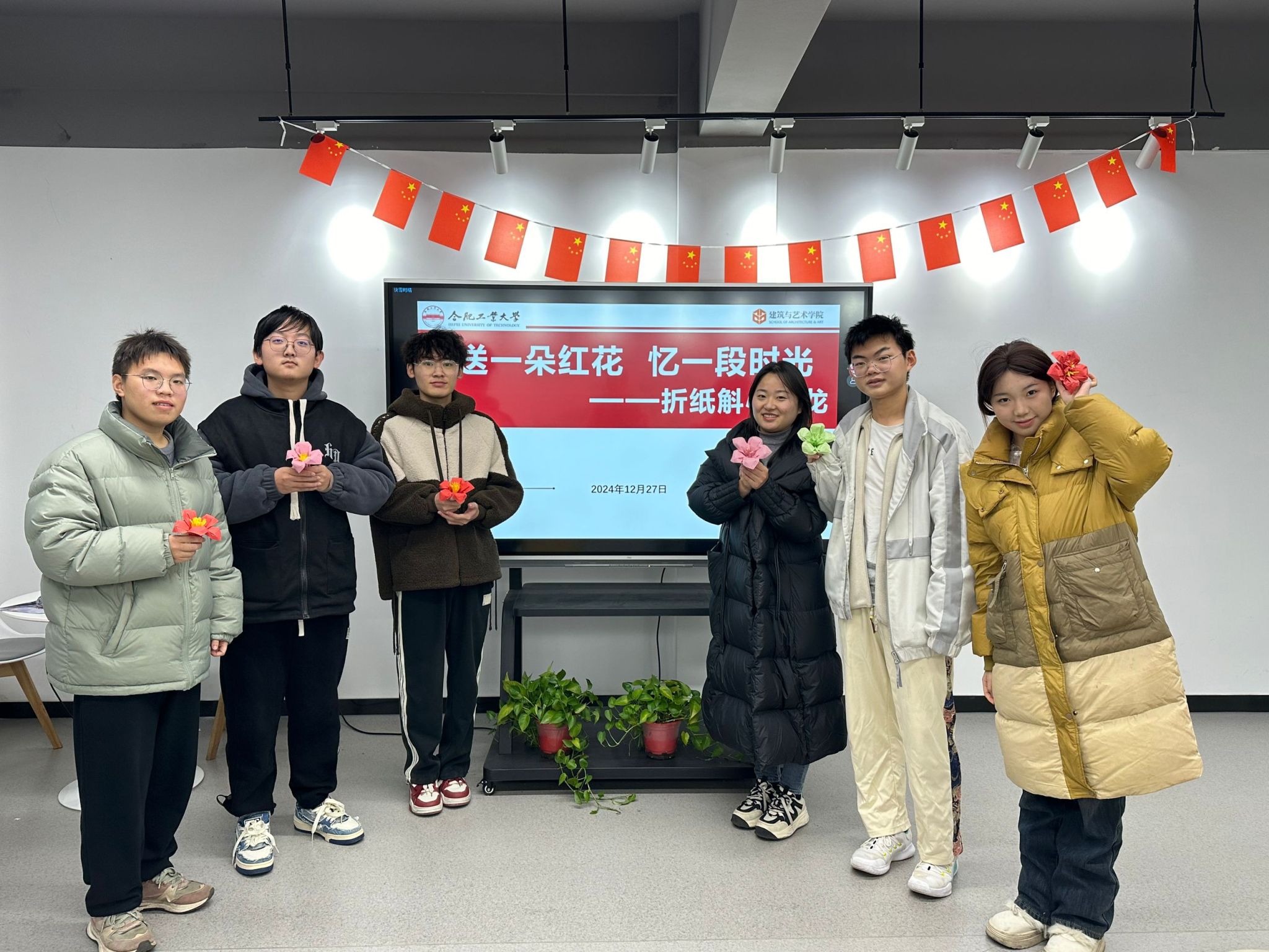 活动伊始,指导老师许俊介绍了活动设计背景、实施步骤,每人两朵红花,一朵奖自己,一朵赠他人,鼓励同学们积极分享,认真创作。随后,同学们动情地讲述了2024年自己值得奖励的故事和最感谢的人。轻松愉悦的氛围中,同学们的分享或励志,或美好,或动人。在手工制作环节,同学们选取喜欢的纸张,翻转折叠,不一会儿手中就出现了一朵朵美丽的花,奖励2024年辛勤的付出和友善的帮助,感怀温暖和力量。