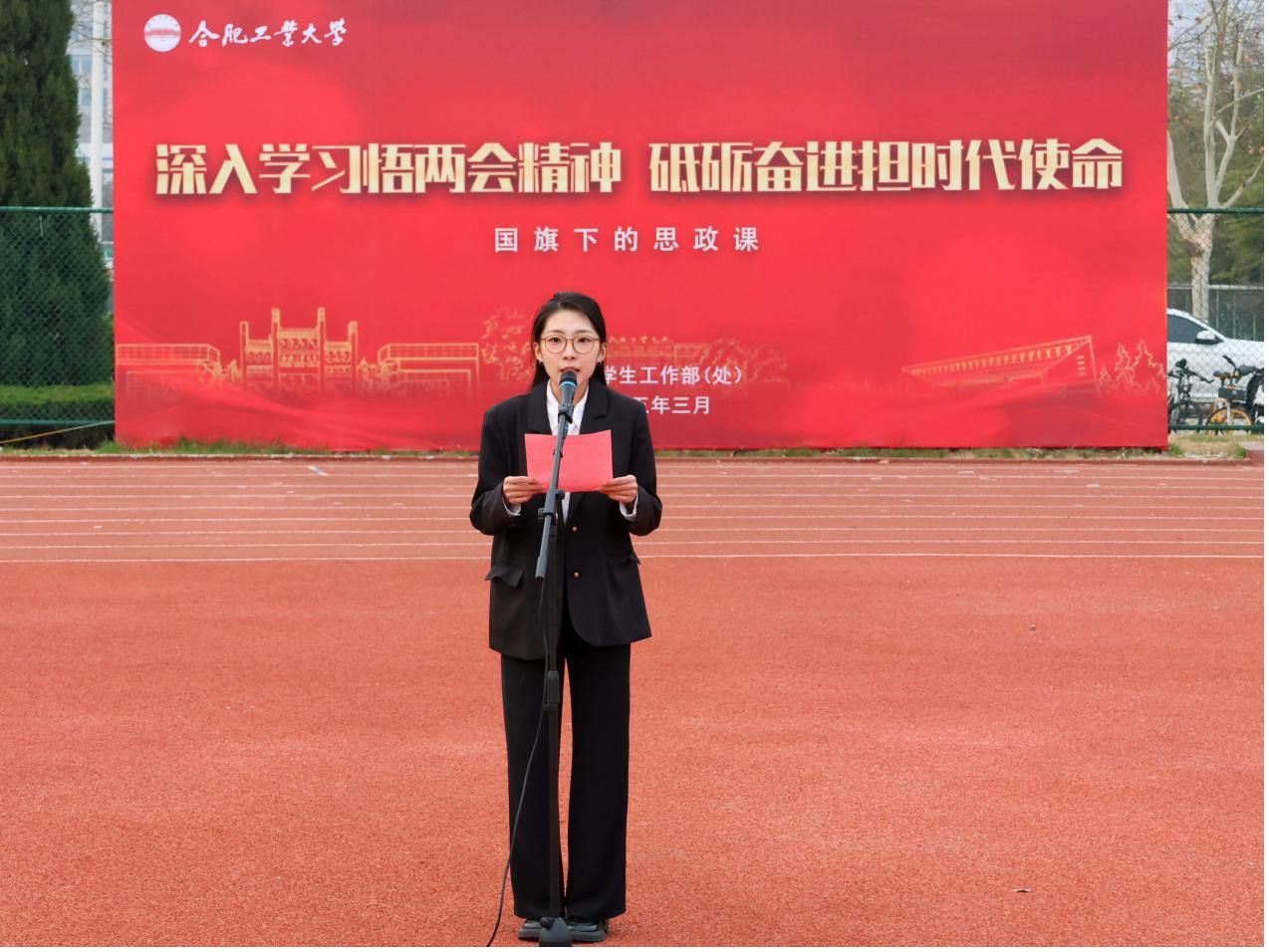在2025年全国两会胜利召开之际,3月10日清晨,m88官网在翡翠湖校区举行“深入学习悟两会精神,砥砺奋进担时代使命”主题升旗仪式暨国旗下的思政课。公司党委员工工作部相关负责人、m88官网相关负责人、辅导员及全体员工参加了此次活动。