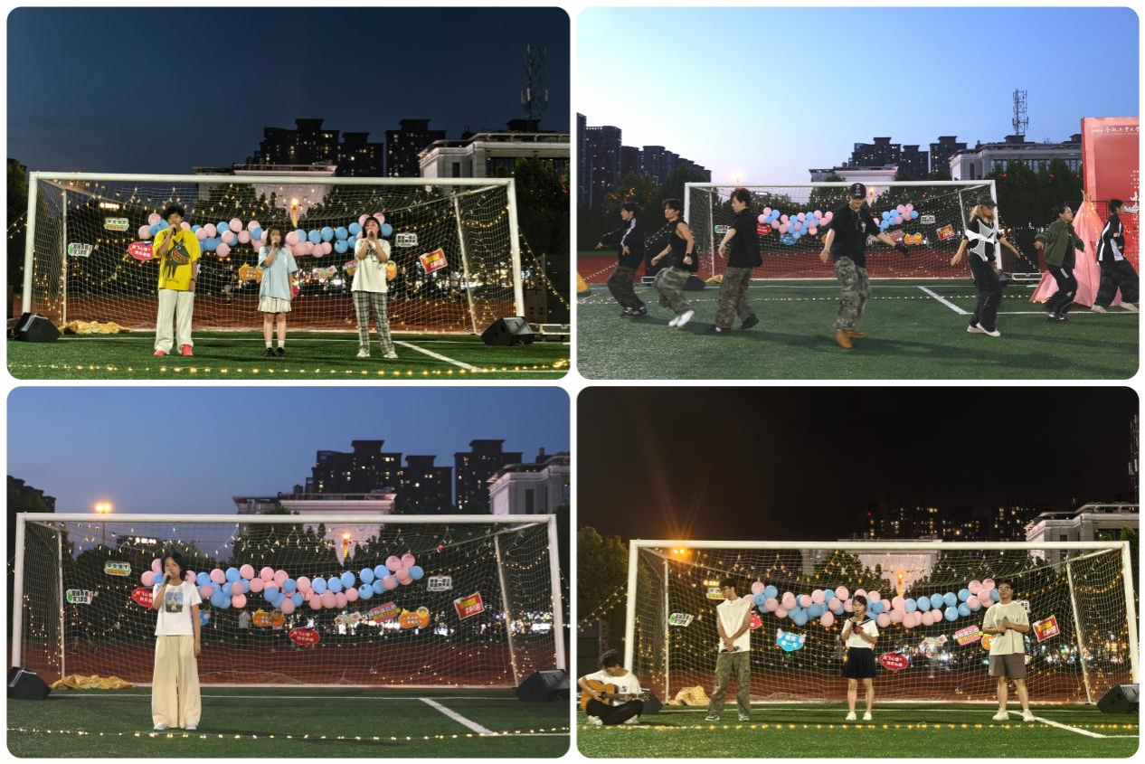 暮色四合,晚风轻拂。开场节目《递麦》以极具感染力的说唱节奏搭配充满张力的街舞表演,瞬间点燃全场热情,为音乐会拉开序幕。《自由的鹿》《相遇的意义》《入心无言》《雨天》通过细腻的旋律将听众带入纯净而诗意的世界,诠释校园相遇的温暖与珍贵,诉说着对青春的向往。歌曲《违背的青春》《你曾是少年》以激昂歌声穿透夜幕,唤起师生对同行时光的珍视。舞蹈《激光律动》与《策略》通过创意编排与默契配合,用肢体语言演绎青春的无限可能,绽放青春的炽热张力。《若月亮没来》《爱的回归线》《在故事的最终》以深情嗓音为青春故事留下注脚,“成长”的余韵在最后一个音乐篇章里随着夜色缓缓流淌。最后,师生跟随旋律舞动,在《你要跳舞吗》热烈的氛围中结束了这场视听盛宴。
