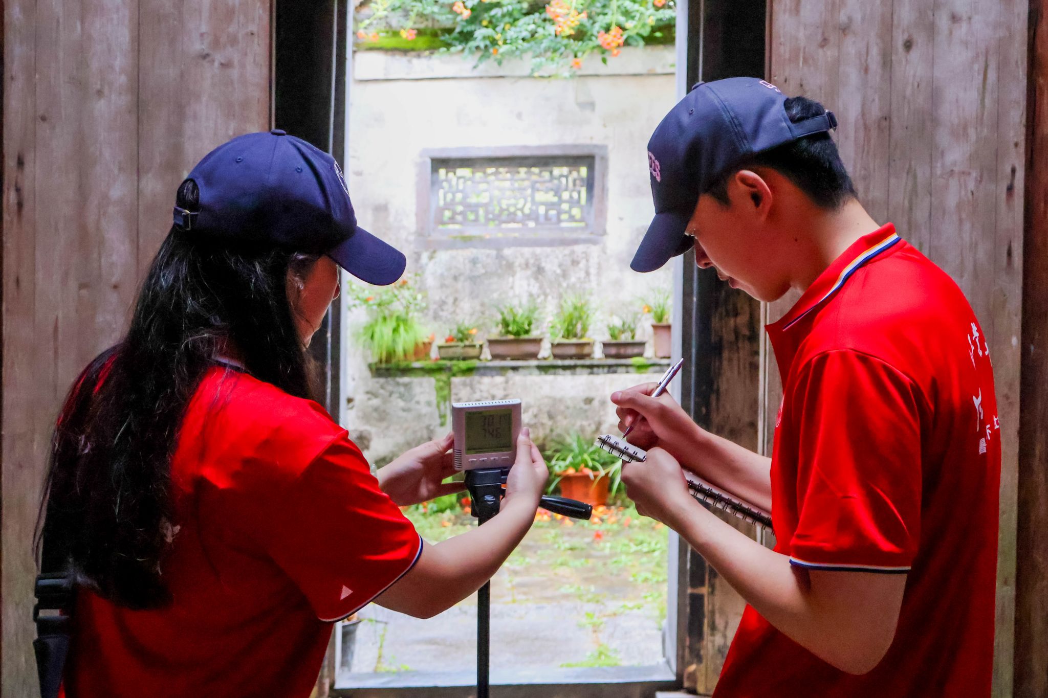 走进千年村落,触摸历史肌理。西递、屏山是皖南古村落代表,承载着徽派建筑精髓与徽州文化记忆。团队调研了村落格局,通过操控无人机理解西递棋盘式街巷、屏山带状形态及徽派建筑与自然的交融。队员漫步其间,感受古村落作为“活态文化遗产” 的厚重与珍贵。解密古建密码,守护文化基因团队聚焦单体建筑调研,对屏山有庆堂、舒氏民居等重点文保建筑分组进行室内微环境测试,分析徽派建筑“四水归堂”“高窗通风” 等构造智慧对室内热舒适性的影响。此外,还通过激光测距仪、全站仪等工具,精确测量建筑的梁架结构、雕刻纹样、构件尺寸,绘制建筑剖面图与细节详图。联动文旅部门,共绘活化蓝图。团队与黟县文旅局展开座谈交流,当地文旅局负责人介绍了“数字古村落” 等项目的保护规划。团队结合专业优势,提出依托此次测绘成果提供古村落三维数字模型、重点建筑保护修缮技术的建议和助力传统技艺传承的初步合作构想。