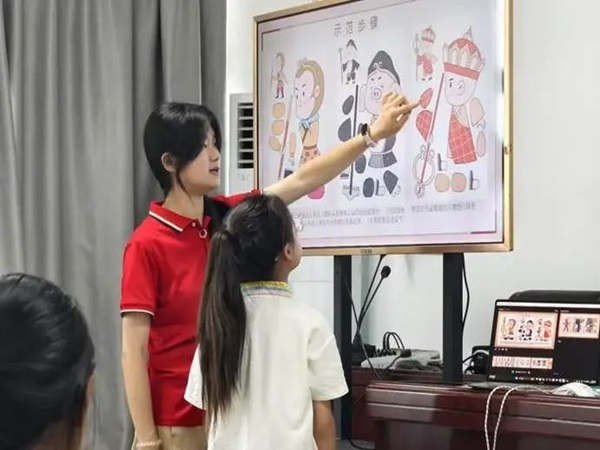 实践团队面向老营村及周边村庄的60余名中小员工开设“素质教育+身心健康+综合服务”三维课程,涵盖爱国教育、思想品德、化学、物理、AI科普、安徽非遗体验、心理卫生、安全教育、武术及趣味运动会等内容,并同步开展乡村人口调研、墙绘美化、农产品品牌视觉升级等助农服务,实现教育帮扶与文化、环境、产业多维联动,为乡村振兴注入可持续的青春动能。为保障支教质效,团队前期完成需求摸排,迭代课程方案,在强化语文、数学、英语课后辅导的同时,新增AI大模型科普、网络安全等课程。艺术板块则将徽派建筑手绘、皮影戏制作与“美丽乡村艺术创作计划”深度融合,实现传统非遗活化与环境风貌提升双轮驱动。在支教活动结束之际,团队还举办了“挺膺担当·童梦飞扬”主题文艺汇演,通过武术、合唱、皮影戏、朗诵及员工作品展集中呈现为期两周的实践成果。