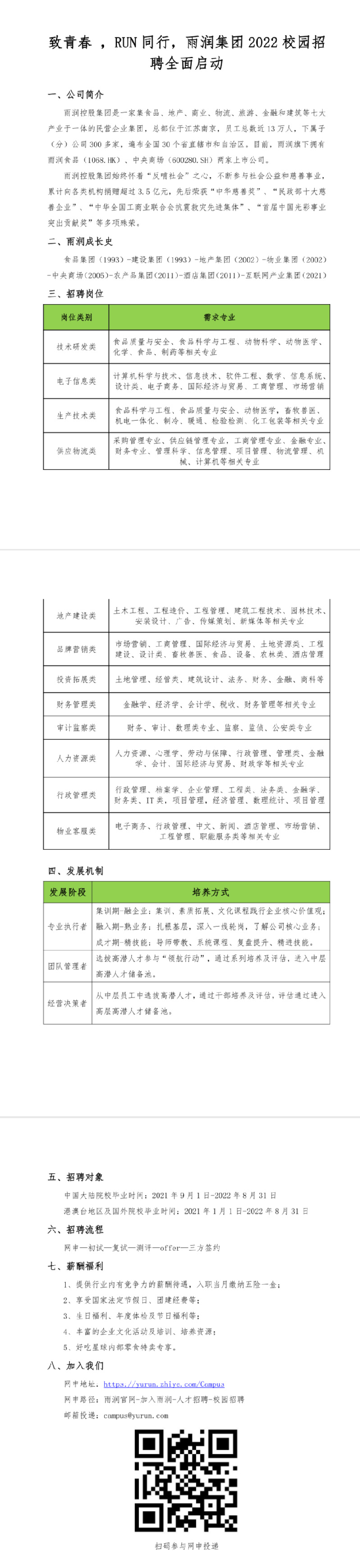 致青春 ,RUN 同行,雨润集团 2022 校园招 聘全面启动