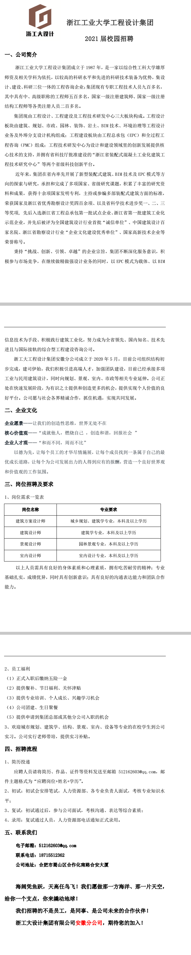 中国建筑西南设计研究院有限公司 2021届未蓝生校园招聘简章