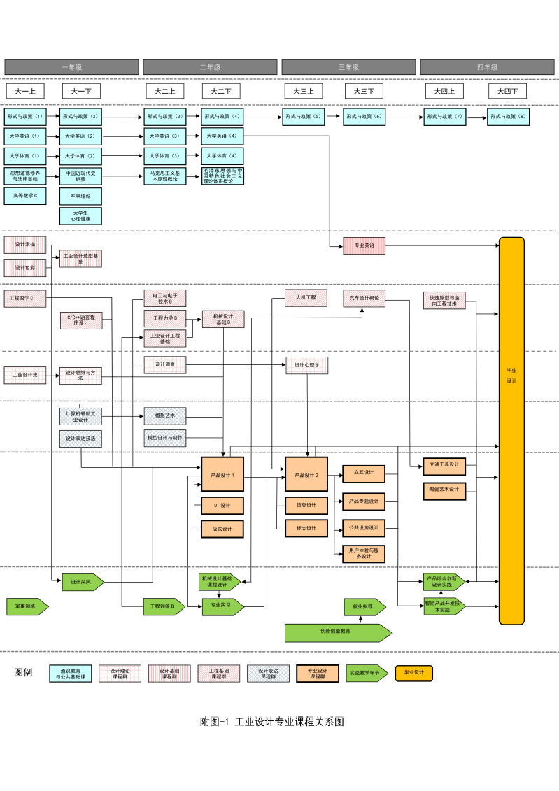 人机工程(48学时,3学分)、设计表达技法(48学时,3学分)、模型设计与制作(72学时、3学分)、产品设计1(80学时,5学分)