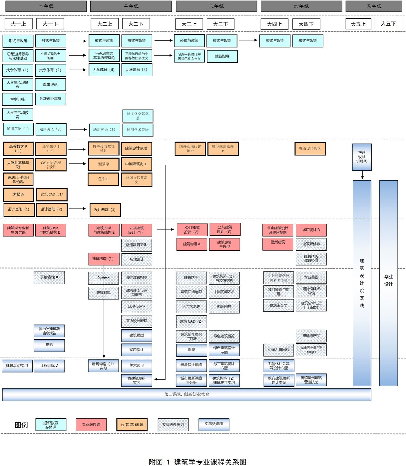 核心课程:公共建筑设计、建筑设计原理、住宅建筑设计与居住区规划、城市规划原理B、城市设计A、城市设计概论、设计基础、素描A、色彩B、中国建筑史A、外国古代建史、国外近现代建筑史、建筑物理A、建筑材料、建筑构造(1)、建筑力学与建筑结构B、建筑结构选型、建筑设备与选型、建筑创作理论与方法、数字建筑技术、绿色建筑概论。