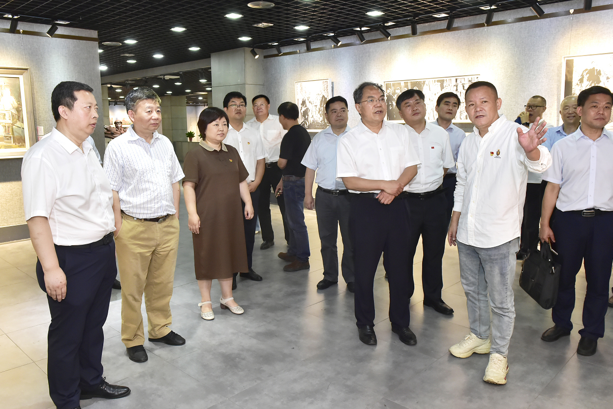 赵振华一行依次参观了“精神的力量”庆祝建党百年美术作品展和“绘小岗新貌 谱育人新篇”院地党委共建成果展。认真听取相关人员的介绍,并同创作者亲切交谈,详细了解展出作品的创作背景和精神内涵以及院地党委共建服务乡村振兴工作等情况。参观过程中,赵振华对公司庆祝建党百年美术作品展和院地党委共建成果展给予了充分肯定,高度赞扬了公司师生将学科特色与传承红色基因、服务乡村振兴相结合的做法