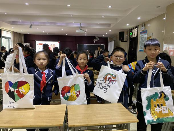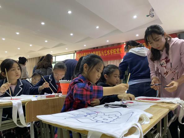 活动主要结合党员教师自身专业特色,以传达艺术的感悟,传播传统文化艺术,激发创新创意为思想主线,通过展示本系各专业方向优秀设计作业,直观呈现美术创作方式和设计创意理念;指导小员工以帆布袋为画布,贴纸为素材,运用五彩缤纷的颜料,发挥他们奇思妙想,进行各种天马行空的图案创意绘制互动形式,让小员工体验一场美育宣讲创意课程。