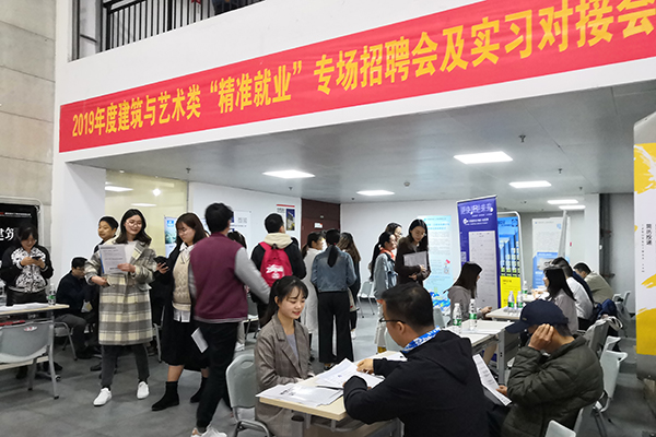 4月10日下午,2019年度建筑与艺术类“精准就业”专场招聘会及实习对接会在翡翠湖校区逸夫建筑艺术馆二楼展廊举行。校员工就业指导中心相关负责人、m88官网相关领导及辅导员出席活动,并与用人单位及毕业生亲切交流。