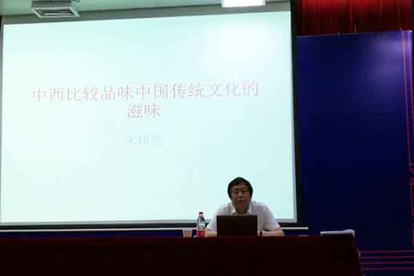 5月19日晚7点,中国文化产业促进会文化遗产委员会会长、中国工艺美术学会雕塑专业委员会秘书长、《雕塑》杂志执行主编宋伟光先生受邀在m88官网负一楼学术报告厅为全院师生作了题为《中西比较品味中国传统文化的滋味》的专题报告,近百余名师生聆听了报告。