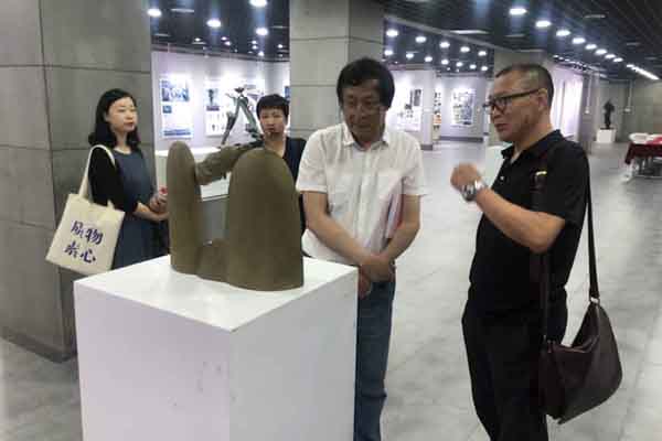 讲座之后,在公司党委书记李学斌的陪同下,宋伟光参观了m88官网二楼正在展出的师生作品展,并与相关教师交流和探讨,他肯定了建艺师生在艺术创作上的成绩,并提出相关建设性指导意见。