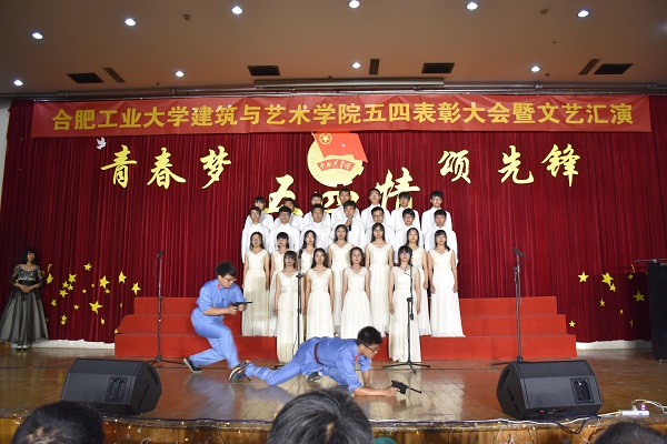 接着,文艺汇演正式开始。本次五四合唱比赛以“青春梦·五四情·颂先锋”为主题,共分为青春、梦想、爱国、求实四个篇章,展示了广大建艺学子的蓬勃朝气。该院员工用整齐嘹亮的歌喉、丰富多彩的表演形式展现出建艺学子德艺兼修、蓬勃向上的精神风貌。 最终由广告学2016-1班荣获比赛特等奖,与会领导老师分别为获奖单位颁奖。