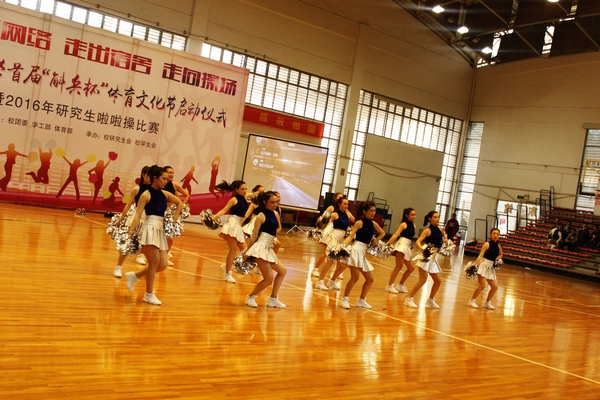 公司由王梦琪、刘文娟、王瑜、杨寒冰、吴迪、童玥、刘嘉慧、张辰茜、陈帅、吴昊、于雨、秦晗、韩茹、李静等14名研究生组成的参赛队伍,在公司2016研究生啦啦操比赛中,凭借完美的展现,从全校18只参赛队伍中,脱颖而出,征服了评委和观众,勇夺第一名。