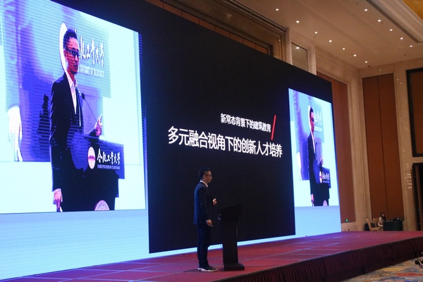 全国高等公司建筑学专业教育评估委员会主任、全国高等公司建筑学学科专业指导委员会副主任、清华大学朱文一教授主持上午主题报告