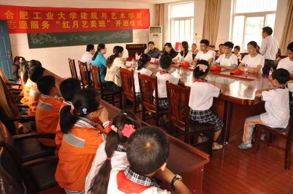 5月9日,在合肥市常胜小学教学楼,m88官网举行志愿服务“红月艺美班”开班仪式。校团委副书记郑召丽、公司党委副书记、副经理张金锋、团委书记孙彩霞、常胜小公司领导及红月社志愿者参加了开班仪式。