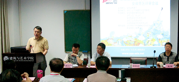 大广赛安徽赛区负责人,副经理苏剑鸣就本次参赛作品的初审统计情况进行了说明并就评审工作进行了布置。第五届大广赛安徽赛区评审委员会执行主席、中国科学技术大学人文与社会科学公司执行经理、教育部新闻传播学类专业教指委委员汤书昆教授详细讲解了大赛评审办法和要求。