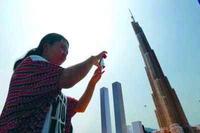 建筑风格很能反映一个人的个性。比如男生倾向于高楼大厦,女生则精于精致的窗棂、道路、对模型内细小行人的雕琢。男生们做出了高约1.2米的微缩版迪拜塔和微缩版帝国大厦,两者在海拔上难分仲伯。迪拜塔原型828米,是世界第一高楼,这个微缩版的则是等比例缩小了700倍。 “模型和原型几乎一模一样,一共162层,每层都由两块木工板外加一块桐木垫起来。 ”迪拜塔一共用了1200块木片,每块精确到毫米级,3个男生是如何把活做得这么细致真是难以想象。