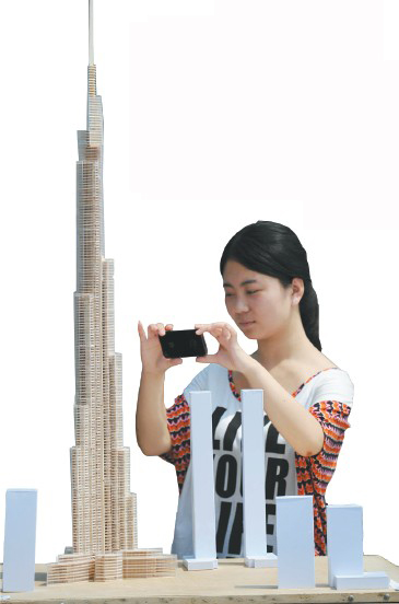 赵逸伦说,为了搭建迪拜塔他们一共用美工刀刻了1200片木片,“每片木片都不能有大的误差,否则塔根本不能稳定下来。”