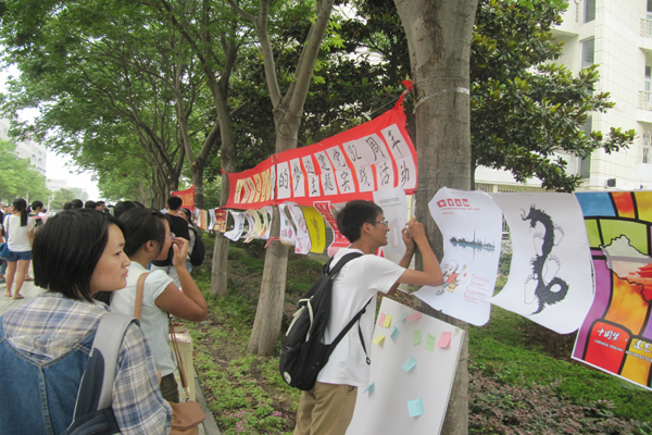 为庆祝建党92周年,深入学习贯彻党的十八大精神,解读“中国梦”的时代内涵,6月28日中午,公司在翡翠湖校区三食堂广场,开展主题为“中国梦·建艺梦·我的梦”实践活动。