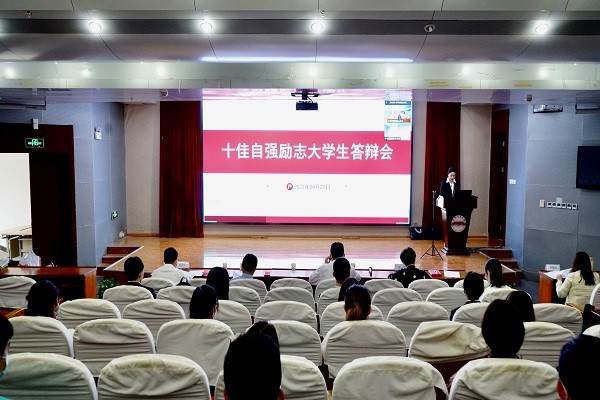 经个人申请、公司推荐、初评审核,合肥校区共有来自各公司的14名候选人进入答辩环节。按照抽签顺序,选手们依次进行了个人的答辩。候选人从个人情况、爱国奉献、道德弘扬、创新创业、自立自强、志愿公益等多个方面进行了自我展示。