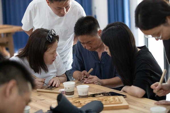 考察期间,学员进入黄山市城市展示馆与“徽字号”徽雕艺术博物馆参观调研;赴黟县碧阳镇朴蔓农场双创中心、歙县胡开文墨业有限公司等处进行参观体验;赴徽州雕刻传承中心与非遗传承人汪德泓老师进行交流,同时,学员们亲手体验非遗花灯制作、蜡染工艺、徽墨制作以及木雕制作等传统工艺,为探索原生文化、研学与休闲融合等多视角发展开辟了新的设计思路。